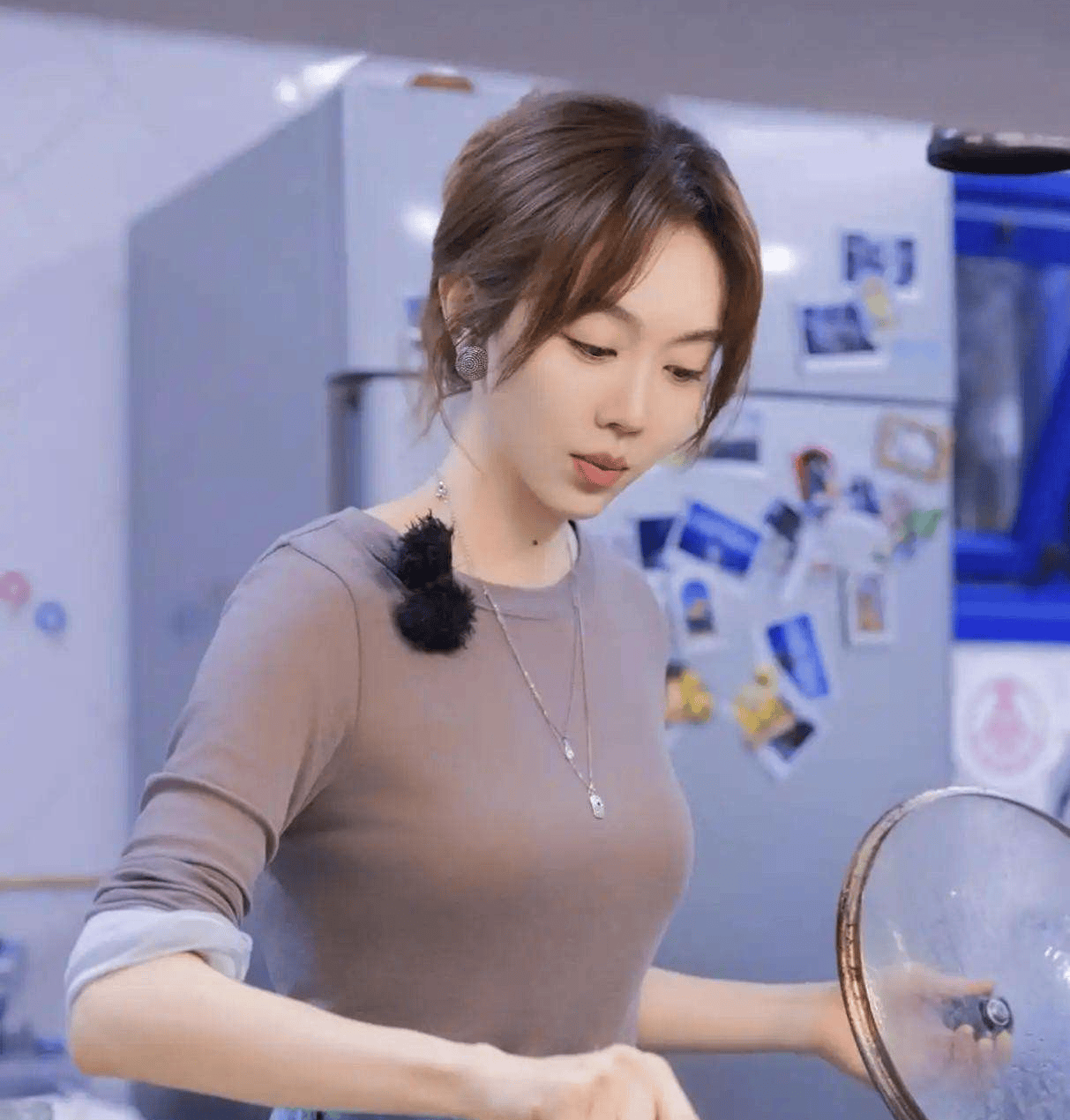 到姜妍的一组路透照,我真是被震撼到了!这位39岁的实力派女演员,穿着一套简单的灰紫色衣服去录制综艺节目,结果一出场就瞬间吸引了全场的目光。