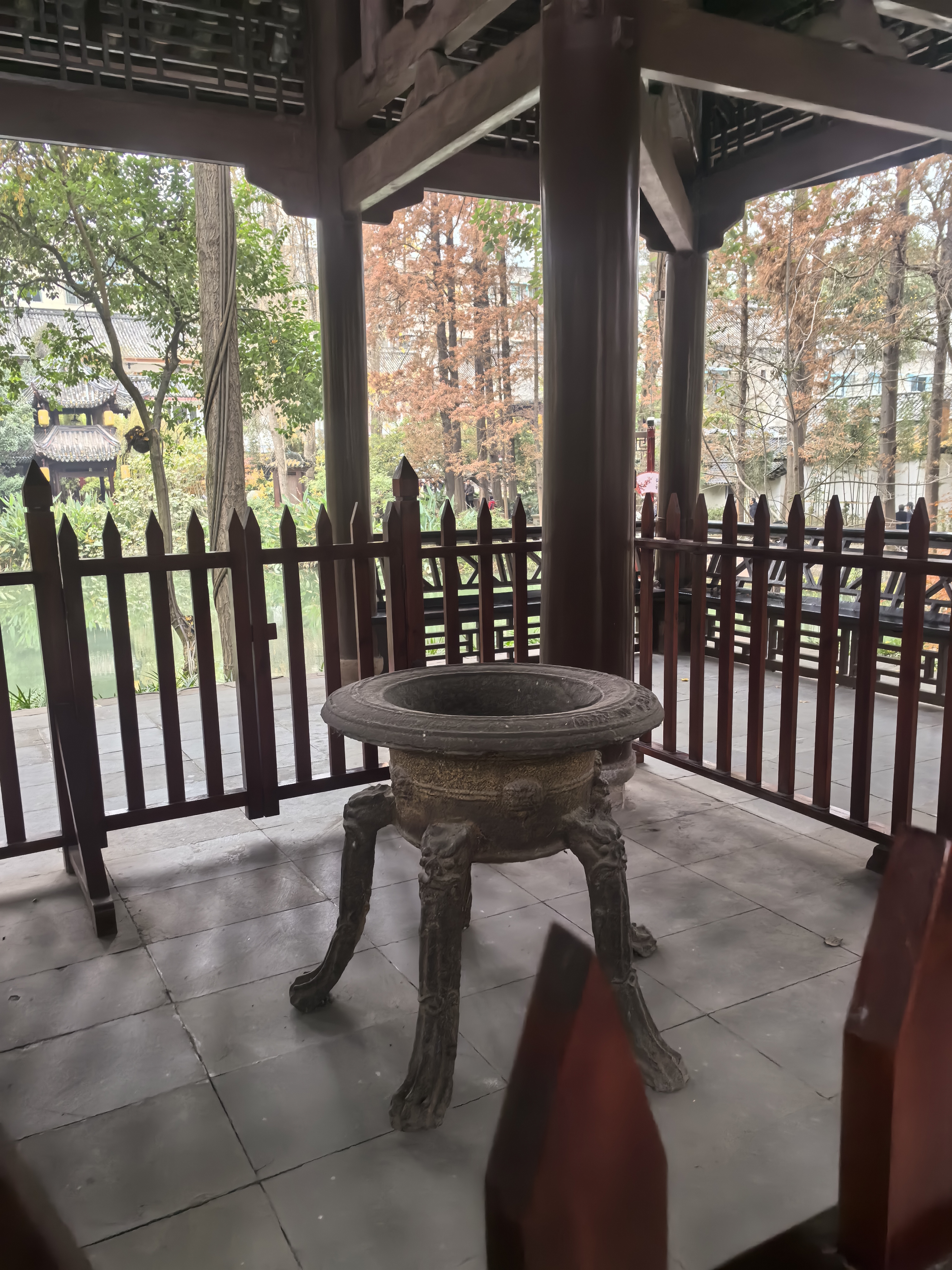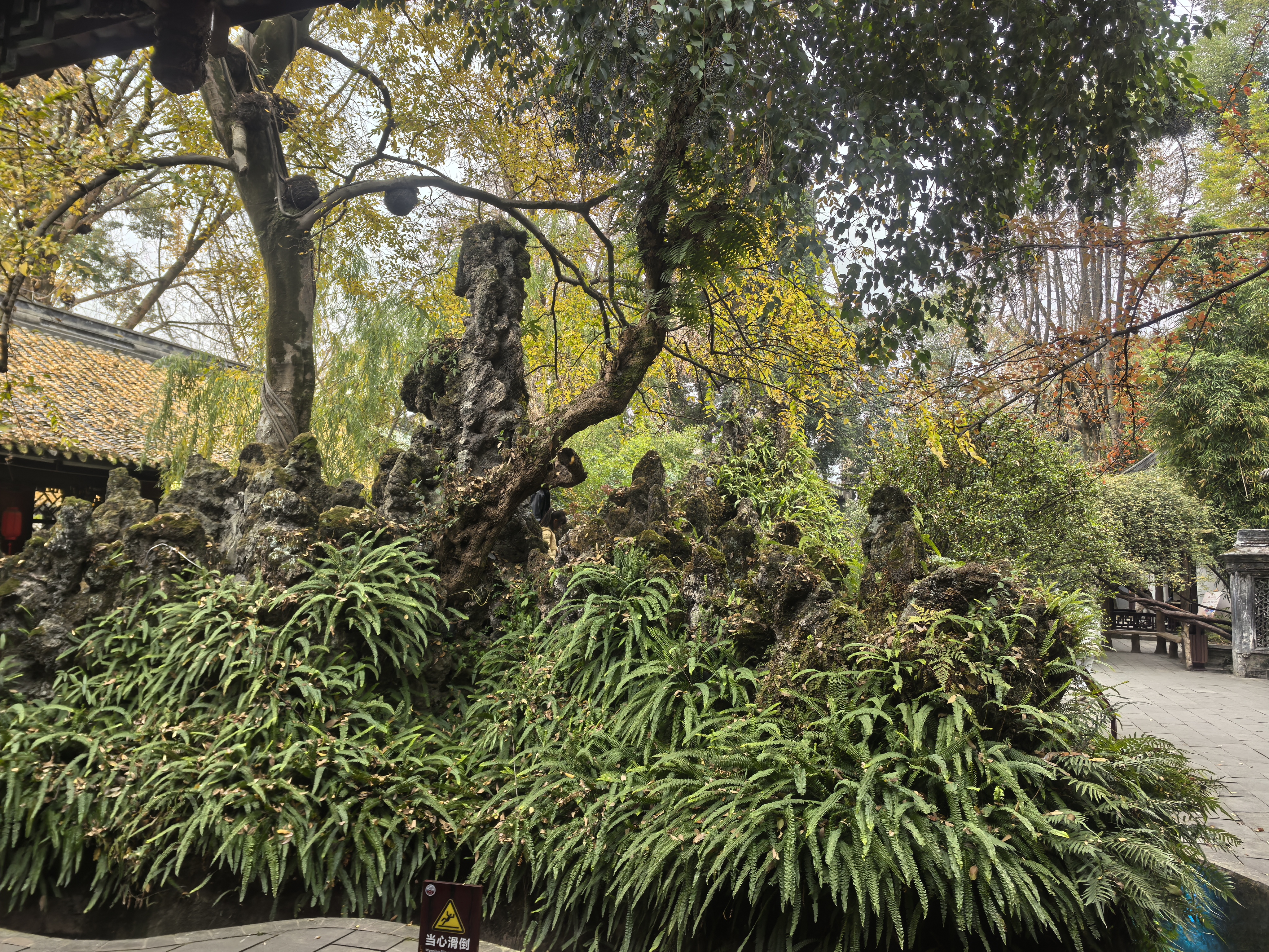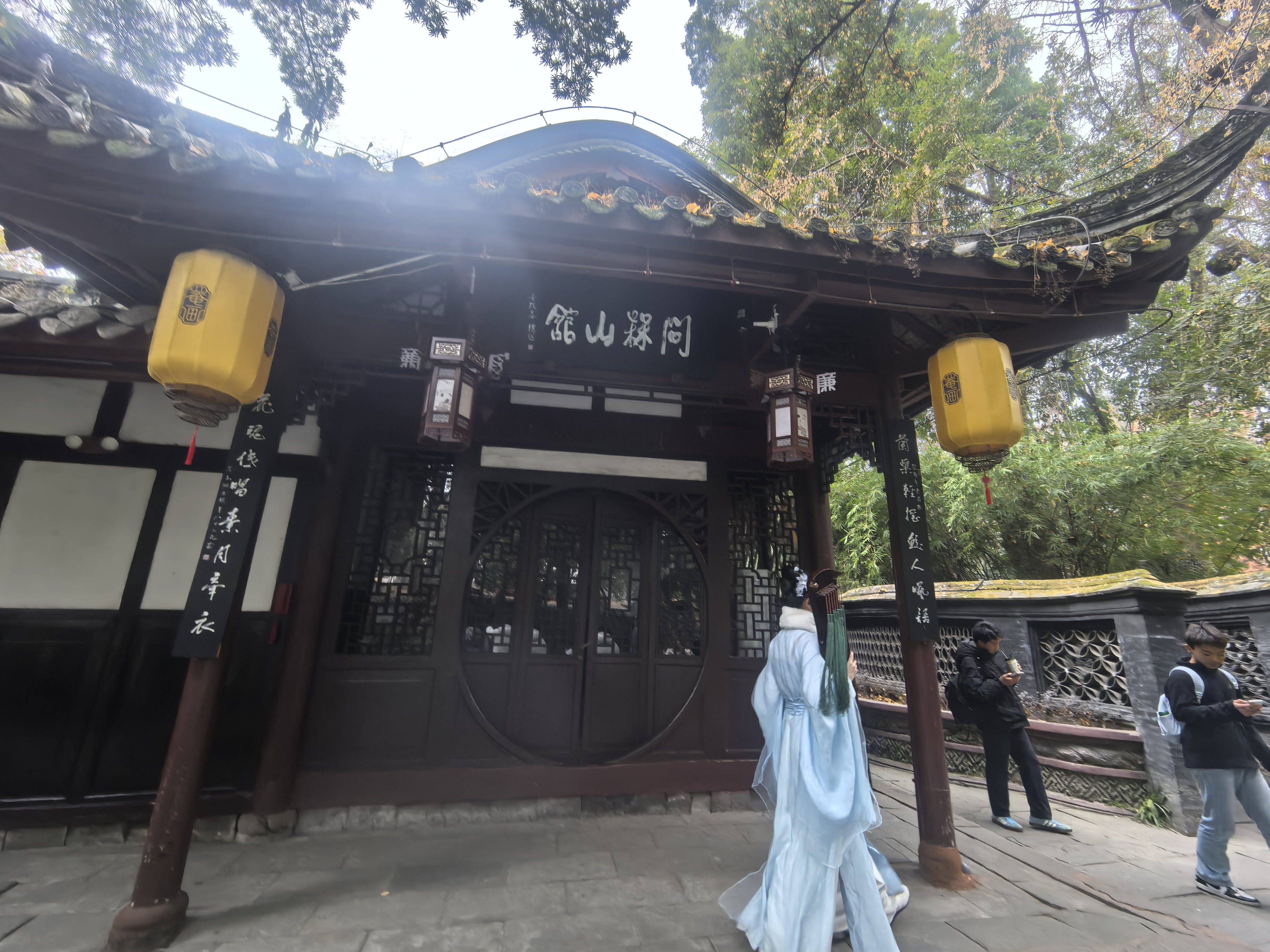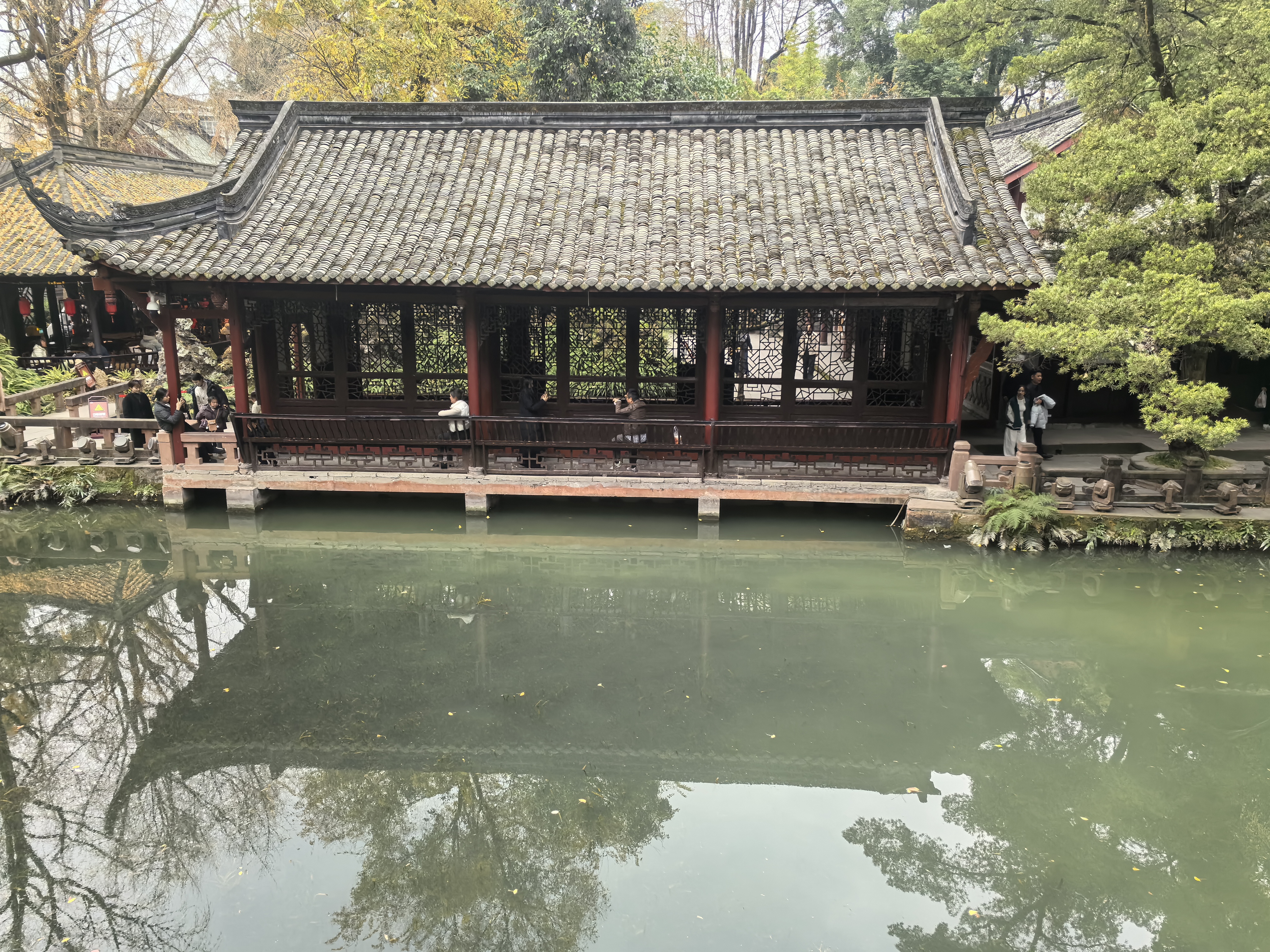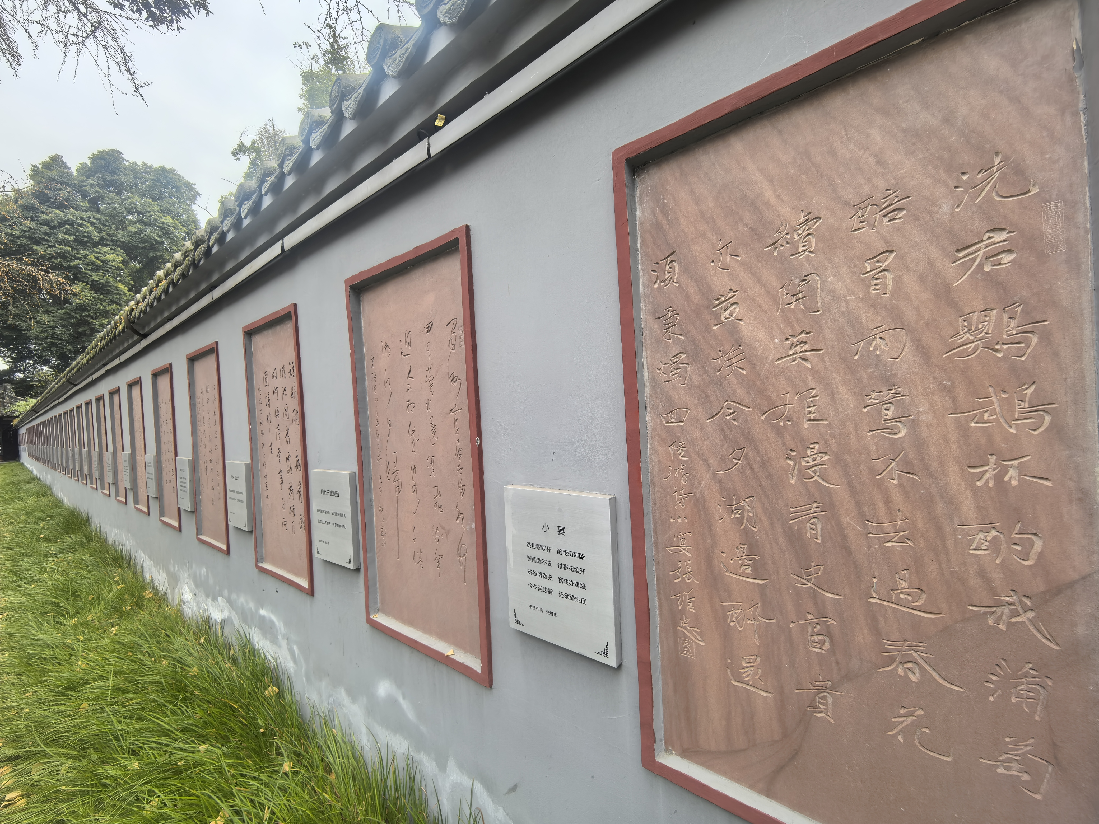 来到陆游祠了,诗书之气由然而起。陆游祠为川西四合院书院式祠堂,祠内有梅园、梅阁、花径、放翁堂、风月轩等建筑。放翁堂内有陆游像,气宇轩昂。祠内陈列有陆游的诗、画及《怀成都十韵》、《游近村》等草书手迹石刻。罨画池水面呈椭圆形,面积约10亩,被誉为蜀州胜景,以广植梅花著称。唐代裴迪与流寓成都的杜甫曾来此赏梅,相互和诗,杜甫在此留下了被誉为“古今咏梅第一”的《和裴迪登蜀州东亭送客逢早梅相忆见寄》一诗,诗中有“东阁官梅动诗兴”一句,不仅说明了东亭作为官家衙署园林的事实,也使得园中的梅阁和梅园因杜诗而存留至今。 罨画池,川西庭唐宋院的一颗明珠,到这里一游,定会不虚此行。