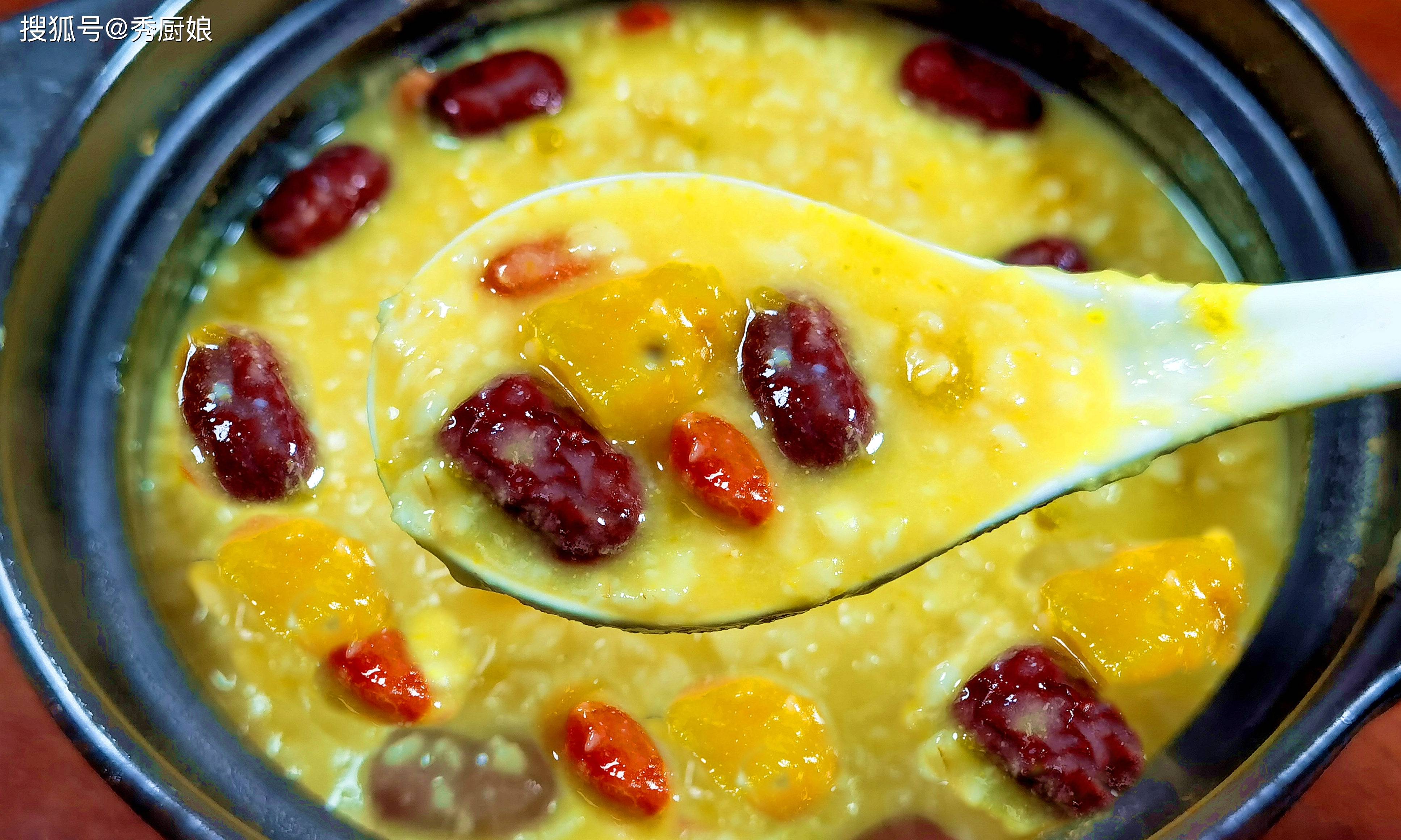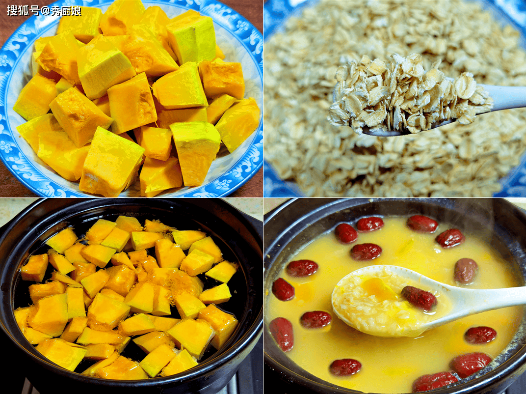 二、南瓜红枣燕麦粥:秋冬暖心“黄金粥” 1. 老南瓜去皮切小块,五六颗红枣洗净去核 2. 锅中加水,放入南瓜和红枣,大火煮开后转小火煮10分钟