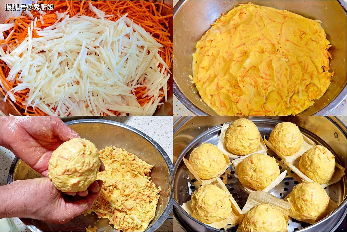 一、杂粮蔬菜窝窝头:藏着“三色营养” 1. 红薯、山药各一小段,去皮后擦成细丝(手慢的用擦丝器,又快又均匀) 2. 将菜丝放入盆中,加两勺玉米面、一勺豆面,少许小苏打,少量多次加温水,揉成能成团又不粘手的状态