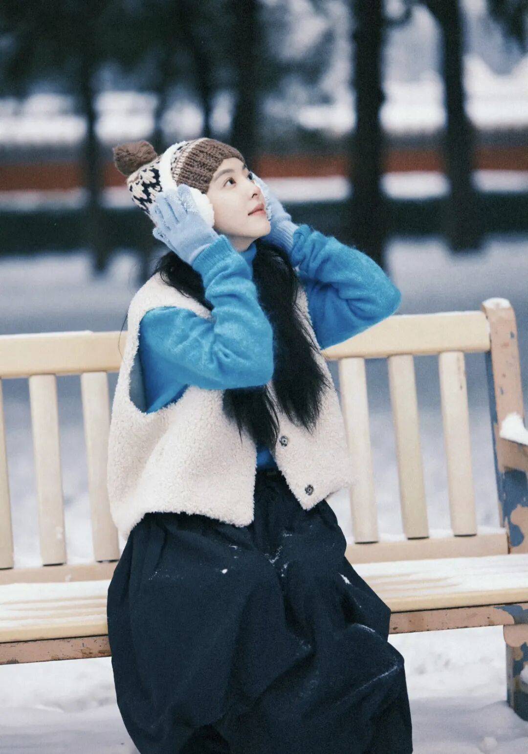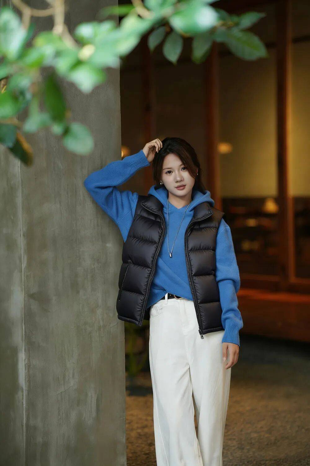 暖冬天气,没有厚重的外套,一件保暖的羊毛针织开衫刚好足够,搭配羽绒马甲也是绝绝子。