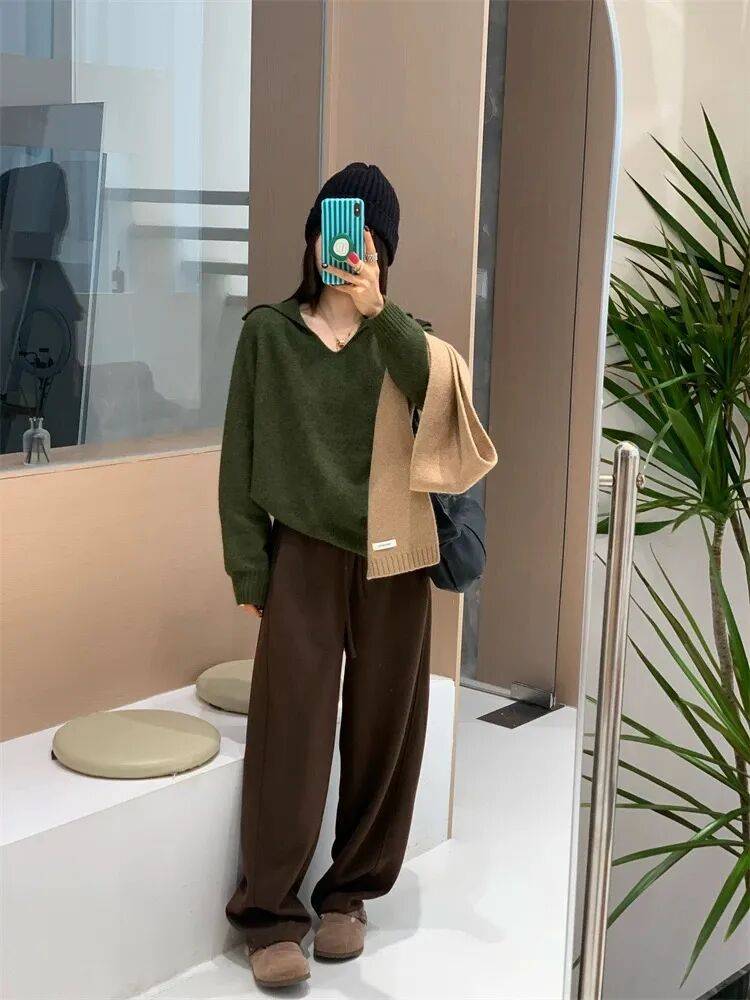 也特别偏爱这种彩色系毛衣,蓝毛衣+白裤子,绿毛衣+半裙,元气又明媚,氧气感十足!