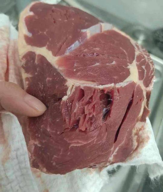 第1种:合成牛排 以前觉得牛排是高档食材,现在十几块钱就能买一块。 很多人回家煎一煎,发现肉质鲜嫩,怎么煎都不老,还觉得自己捡到了便宜。其实,你吃的大概率是“合成牛排”。