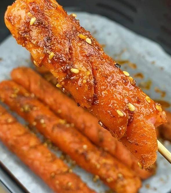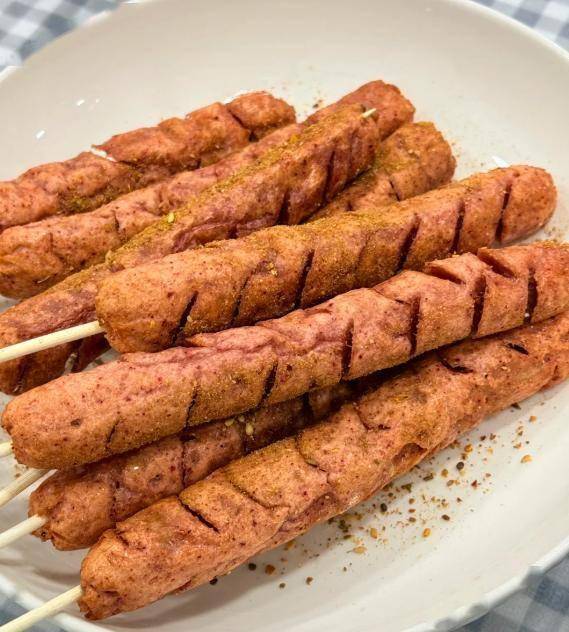 而且,这种牛排为了显得嫩,往往会用嫩化粉浸泡,长期摄入过多的化学添加剂,会给肝肾带来巨大负担。 第2种:淀粉肠 淀粉肠绝对是街边小吃的霸主,闻着特香,烤得滋滋冒油,咬一口还有脆脆的口感。但你仔细看过配料表吗?你会发现,排在第一位的往往是“淀粉”,其次是“水”,然后才是“鸡皮”、“鸭皮”或者“鸡肉”。真正的肉含量少得可怜,基本上都是用肉泥、淀粉和大豆蛋白混合的“仿生肉”。