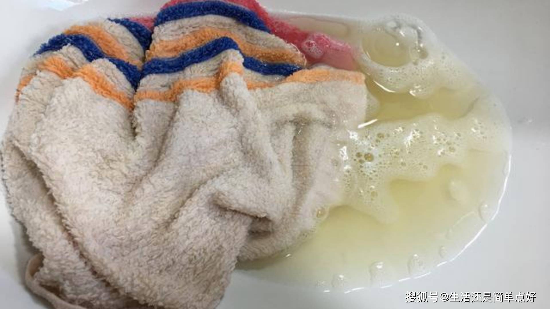 在盆里面倒入少量温水,加入半碗白醋,把毛巾放进去浸泡15分钟,然后直接加入两勺小苏打,这个时候会看到有气泡冒出来,再继续浸泡15分钟,最后用清水把毛巾漂洗干净。 洗完之后的毛巾变得特别蓬松,醋的味道完全消失了,摸上去软软的,吸水性也变好了很多。 方法二:使用淘米水并进行慢煮,能够拯救发黄的旧毛巾