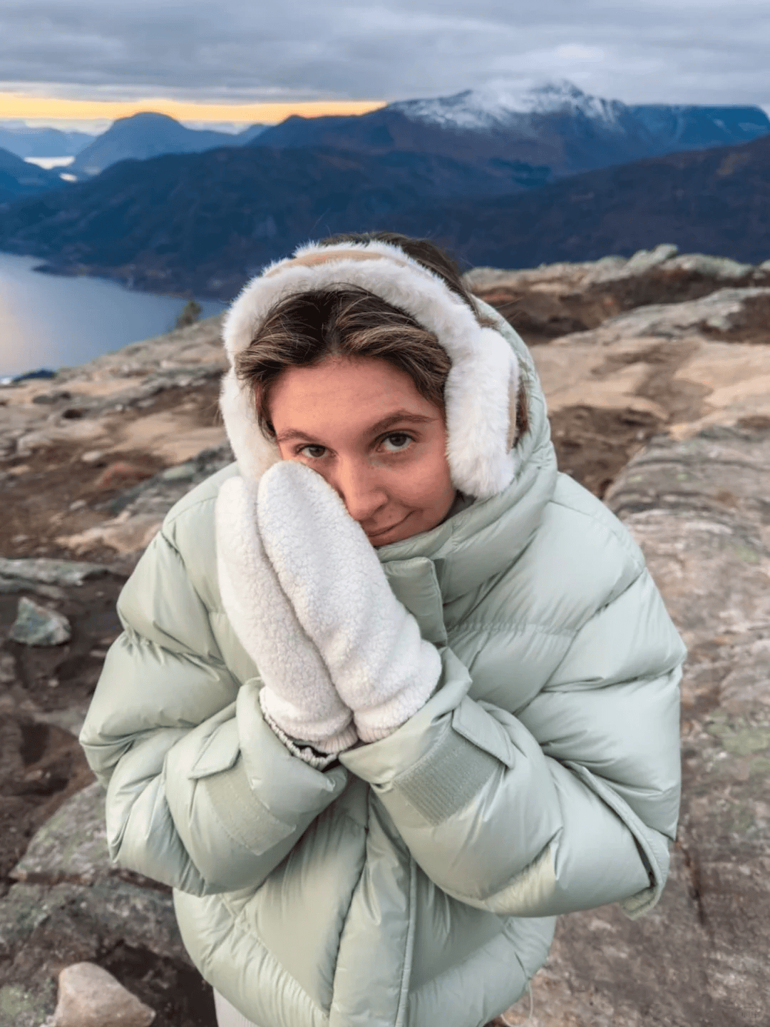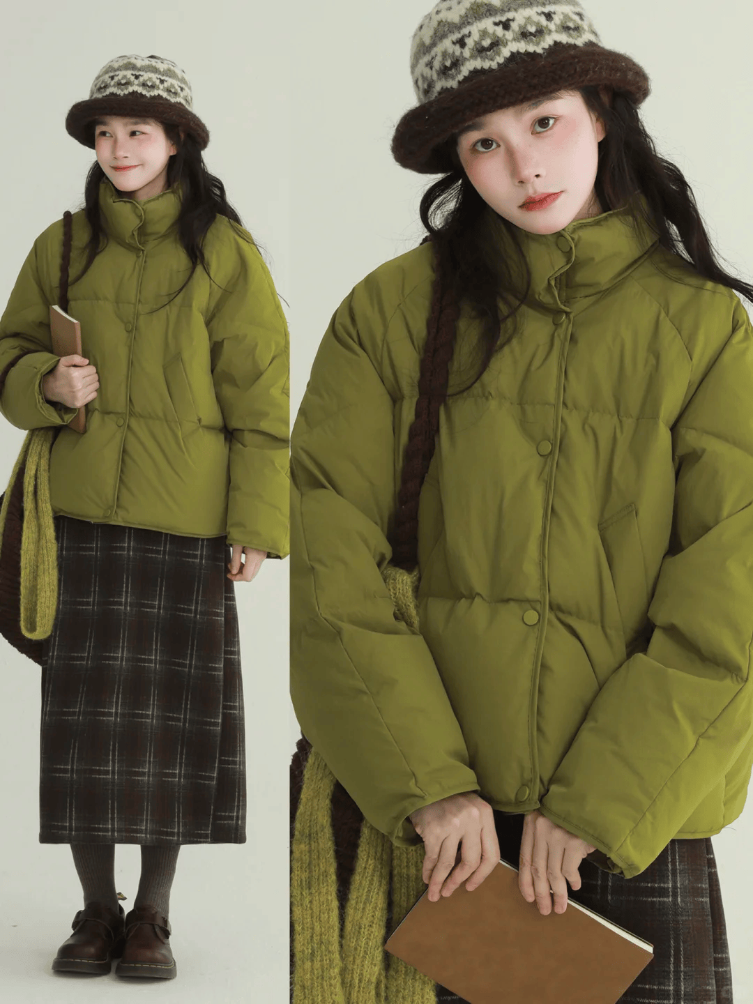 冬日选绿色羽绒服,可以选择低饱和度的,深色系的绿,有一种沉淀后的美感。内搭可以选择大地色系、邻近色、白色系,和绿色羽绒服外套相辅相成。