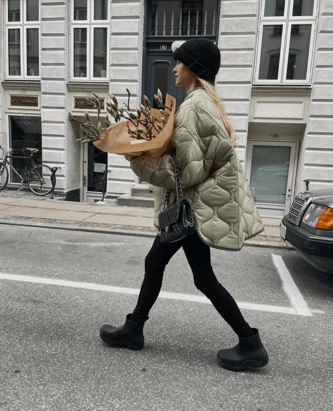 一件宽松的绿色棉服,无疑是今冬衣橱里最具松弛感与生命力的单品。可以配黑色鲨鱼裤、蓝色牛仔直筒裤,整体风格率性又复古。