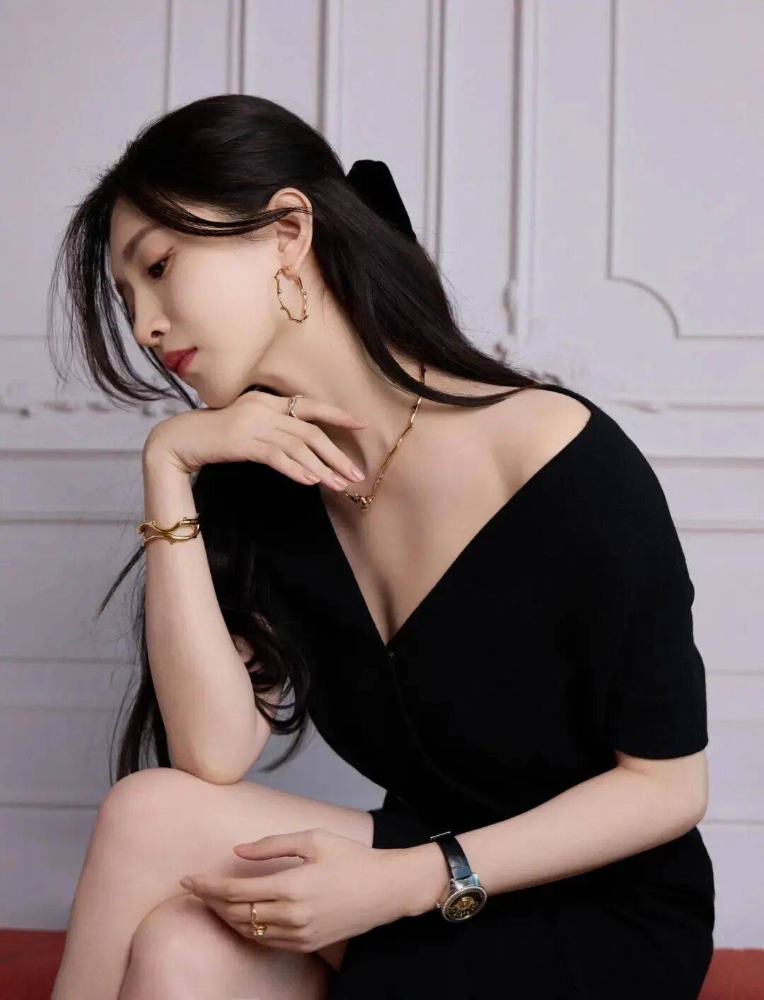 江疏影穿简约黑裙亮相时,连红毯的灯光都变得温柔了——剪裁利落的裙身裹着窈窕身形,腰间一条细银链轻轻垂落,发丝松松挽起,露出天鹅颈,整个人像从老电影里走出的经典美人,网友直呼:“这哪是穿裙子?分明是把‘优雅’二字穿在了身上!”