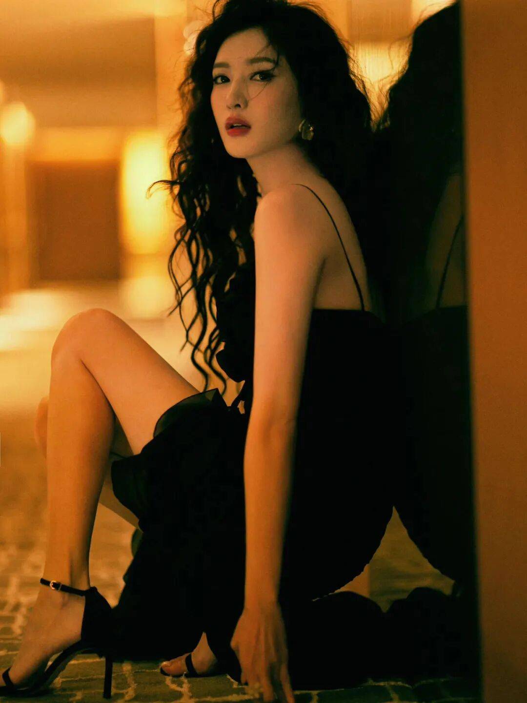 身为当红女星,江疏影拍过很多性感写真,就像这张她穿着灰色吊带纱裙,俏脸清丽脱俗,低头凝视若有似思,精致的五官,烈焰的红唇,露出白皙的香肩和事业线,盘起修长的大美腿,绝对性感火辣!