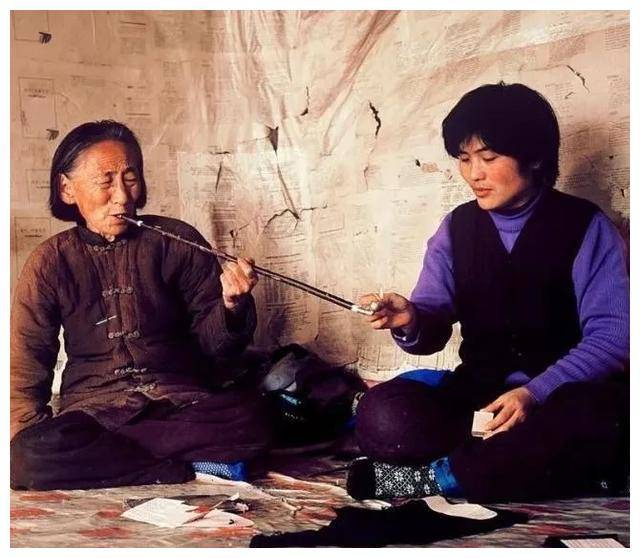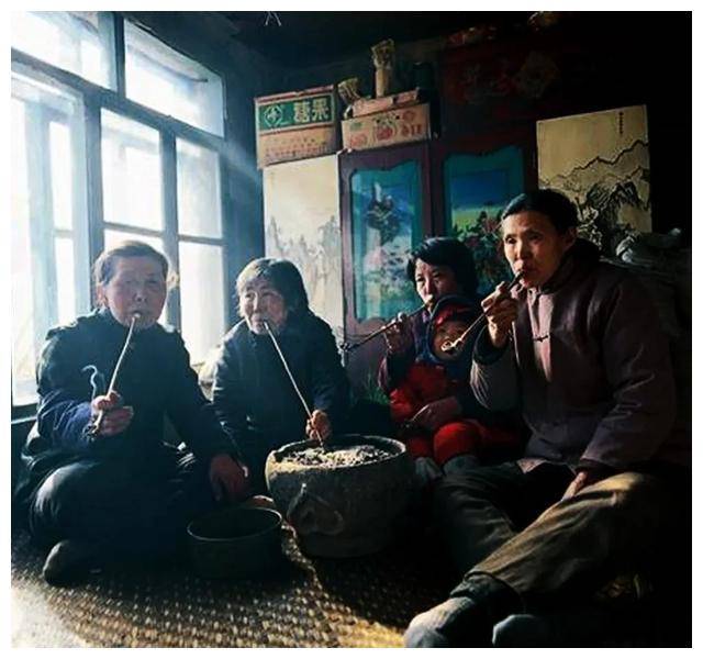 这两张照片特别有意思。老一辈的东北人喜欢在冬天和亲朋好友们坐在一起,抽旱烟,边聊边抽。即便是白天,也能聊到天黑,话题从日常琐事到人生理想,轻松又自在。