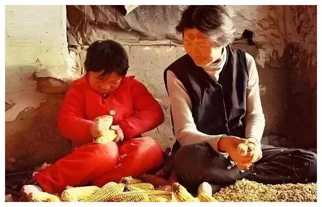 一家人正在一起为苞米脱粒,这项工作又累又脏,但他们乐此不疲,干过的人都知道,这可是个很费手的活儿。