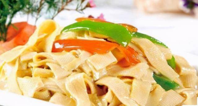 青椒烹饪技巧:猛火快炒,减少维生素C流失;豆腐皮选购:选皮薄透明、色泽微黄、柔软不粘的上等品。
