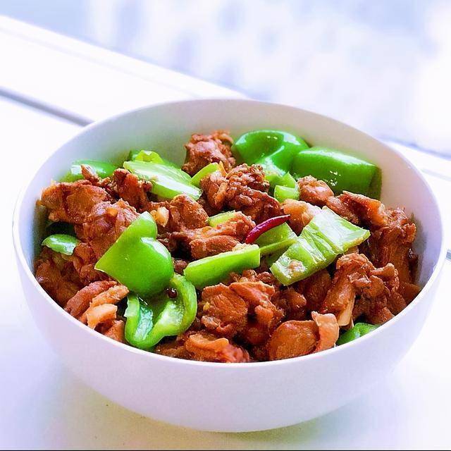 8. 鸭腿炒青椒:鸭腿先焯水去血沫;加开水焖煮至水剩一半时放青椒,青椒变软即可出锅,保证鸭肉入味、青椒不烂。