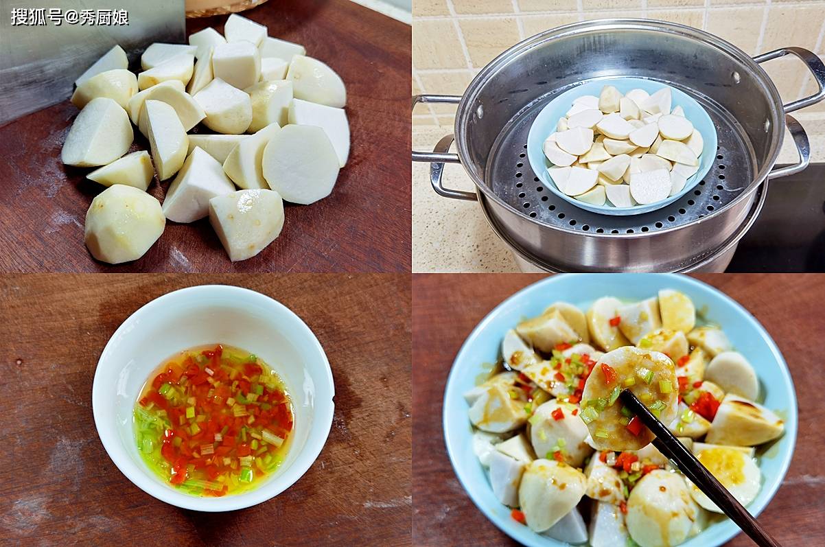 3. 激葱油:在蒸芋头的时候,切点葱花备用。芋头蒸好后取出,趁热撒上葱花和一点点盐。