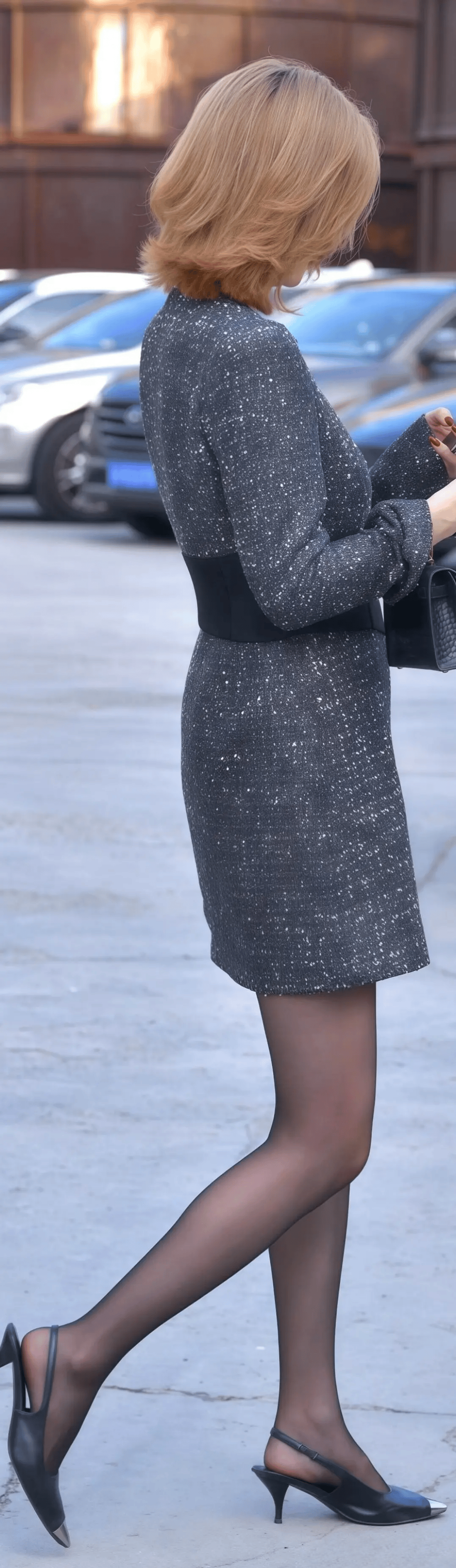 短裙通过暴露腿部曲线,天然成为视觉焦点。高腰A字版型能重塑比例,让双腿更显修长纤细;包臀款则强化腰臀比,成熟中透出性感张力。搭配尖头高跟鞋时,腿部线条进一步延伸,形成“胸以下全是腿”的惊艳效果。