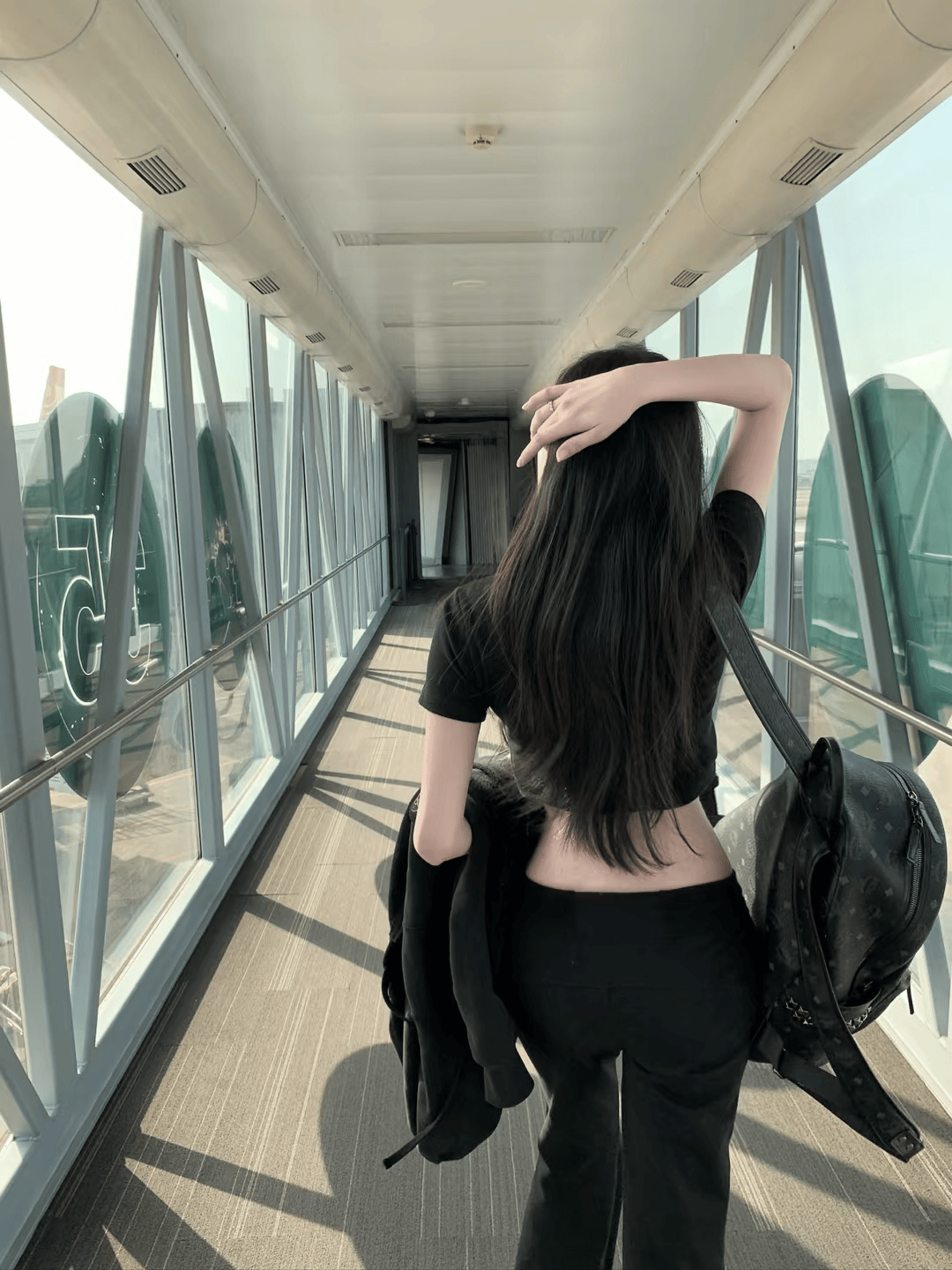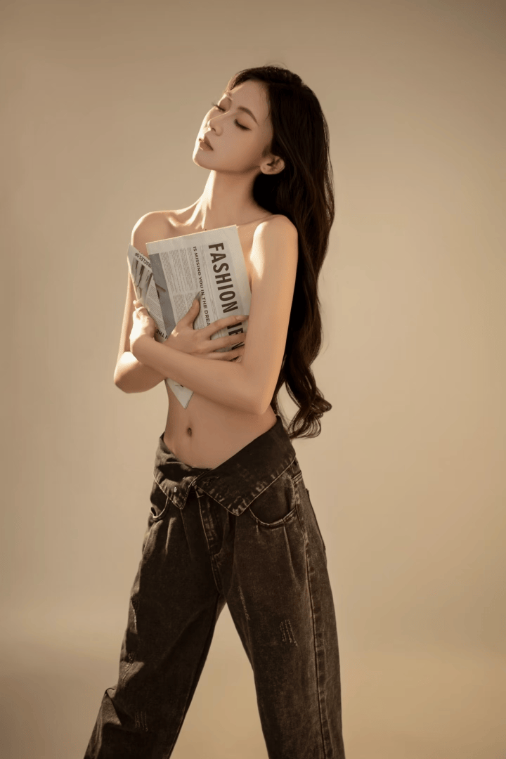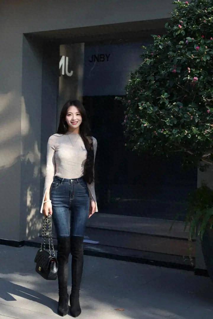 牛仔裤的轮廓,勾勒出长腿的线条。