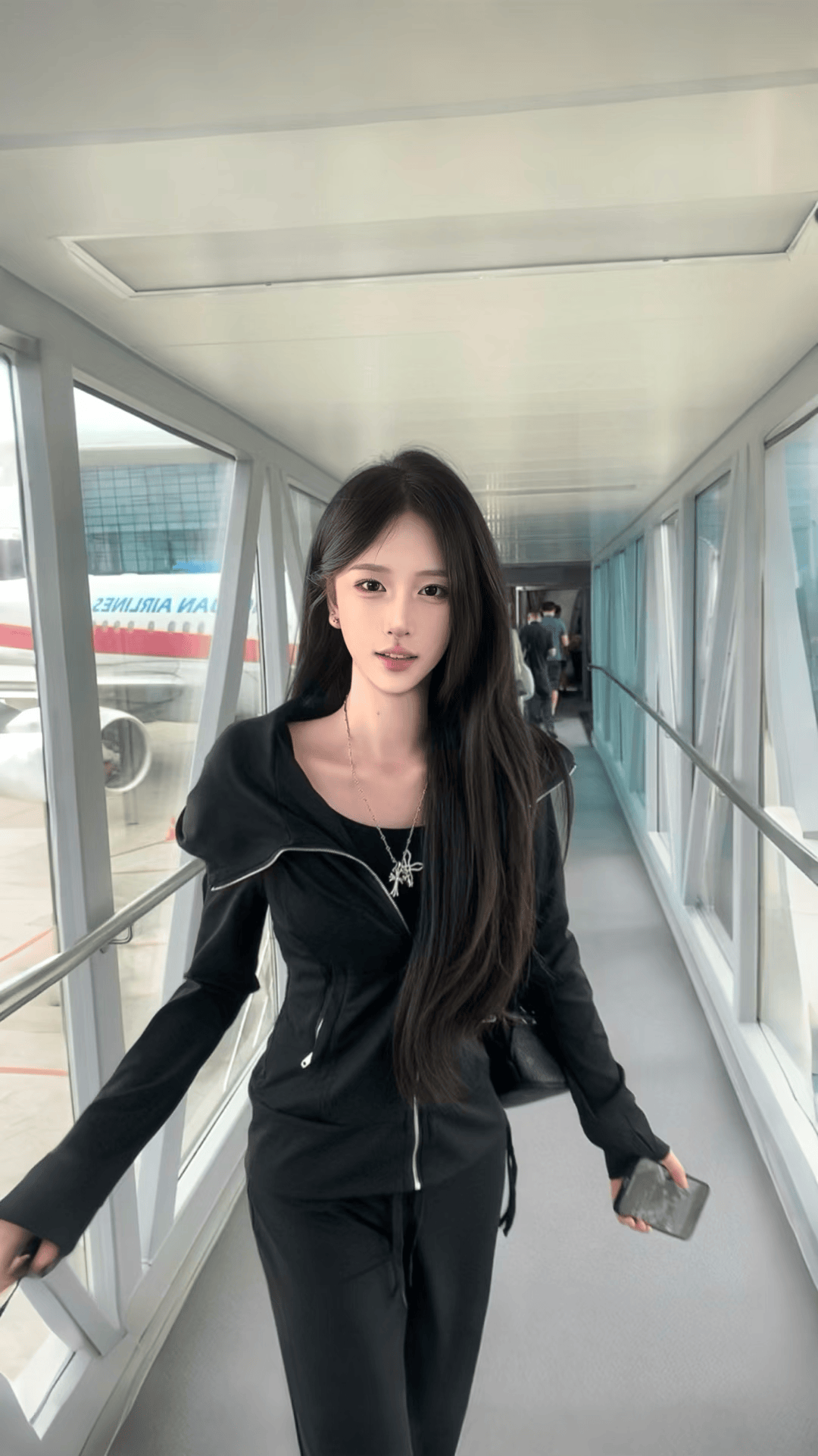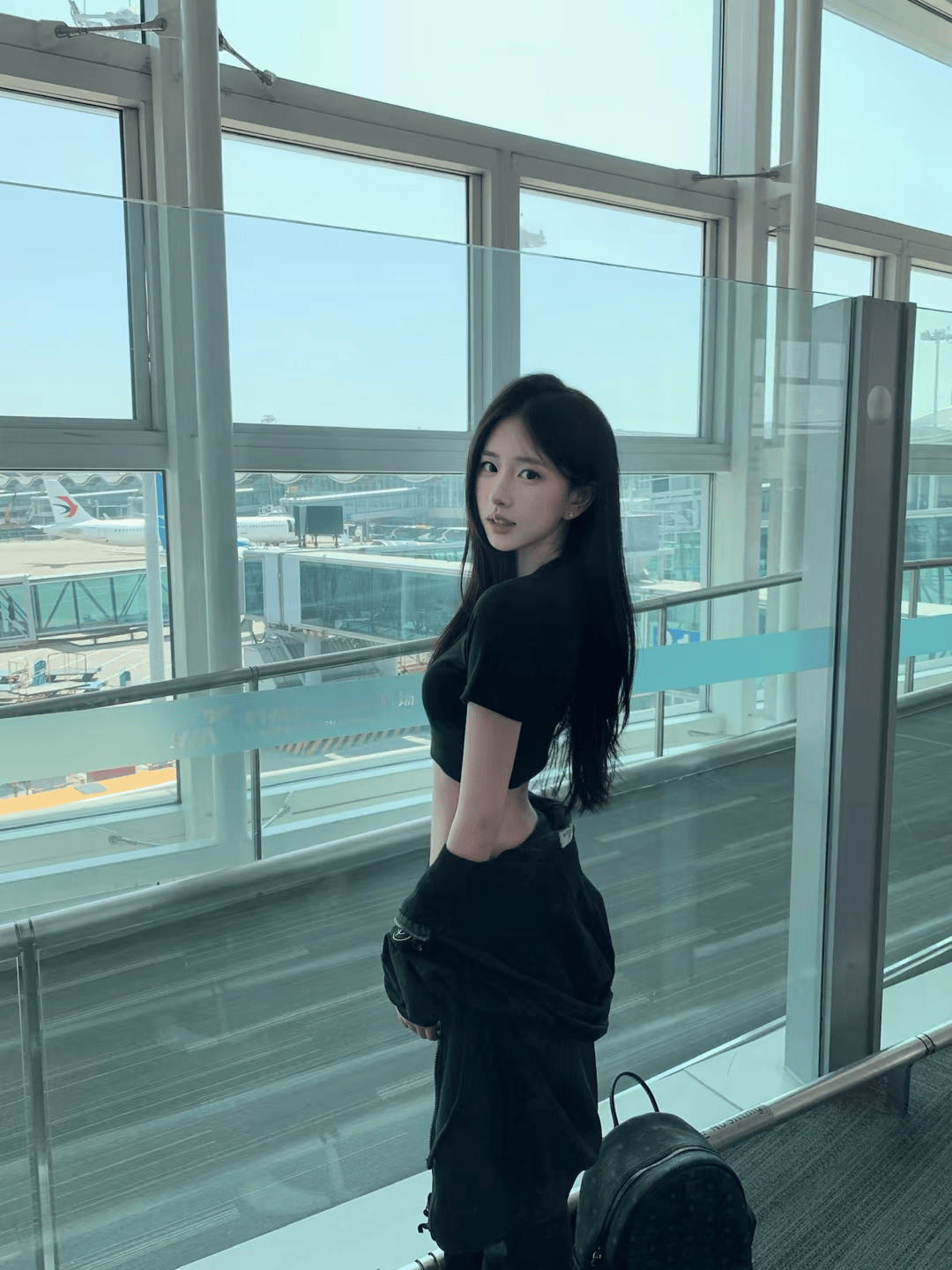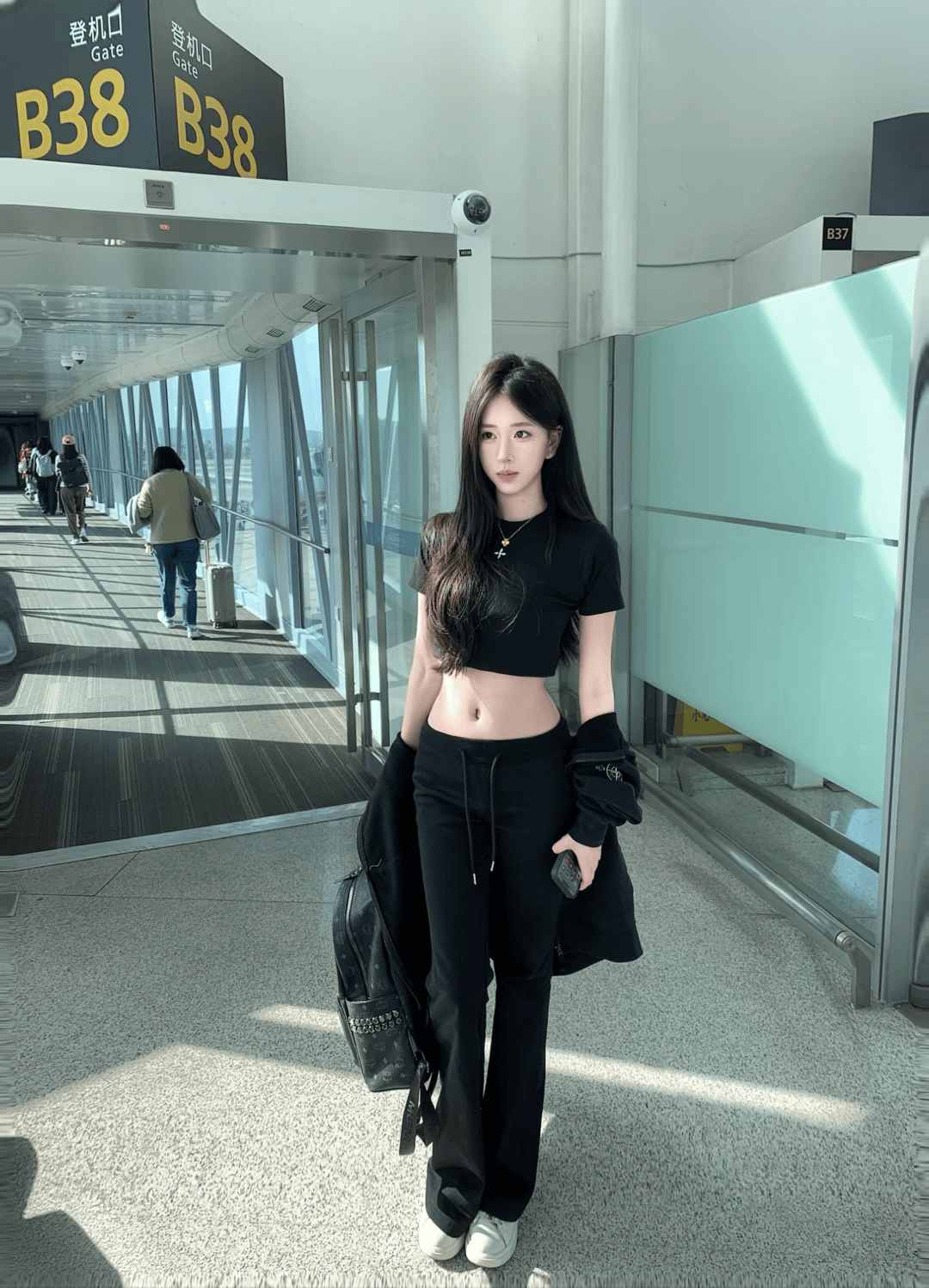 牛仔裤的轮廓,勾勒出长腿的线条。