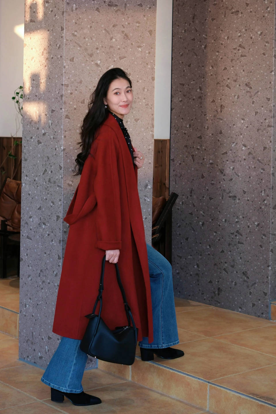 Tips①:红色大衣搭配牛仔裤