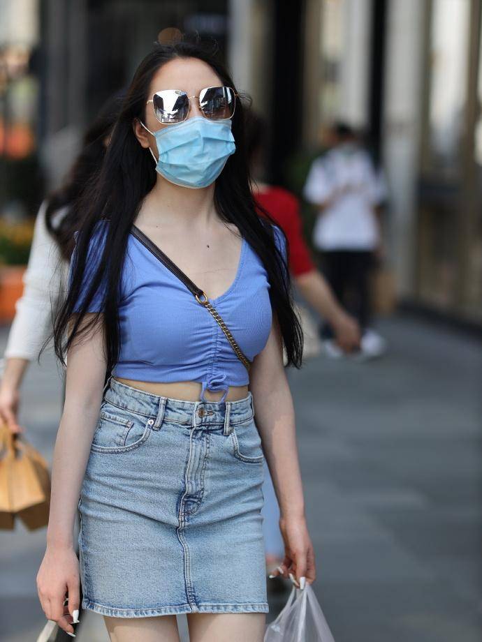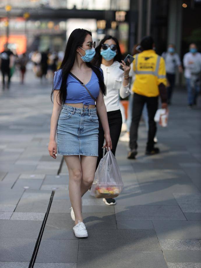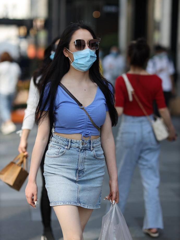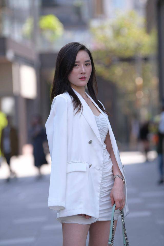 选择低饱和度的柔和色调(如淡紫色、浅蓝牛仔、米白),或带有小清新元素的面料(如网纱、褶皱软弹布),能降低包臀裙的“性感尖锐感”,增添可爱的温柔气质。