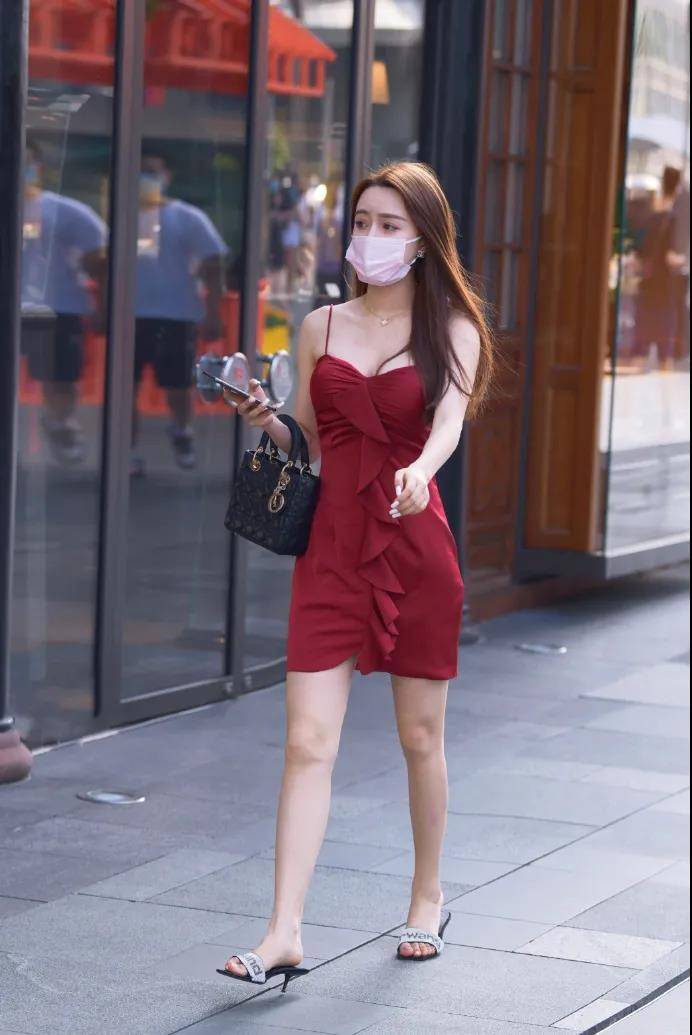 例:长款包臀裙采用**“微包臀”版型**,不像紧身款那样贴肤到底,而是在腰臀处留了一点余量,走动时裙摆轻微摆动,既有曲线的成熟美,又因“不紧绷”显得活泼;再加上细肩带设计,露出锁骨与肩颈线条,纵向拉长上半身,避免肩臂显得厚重,适配肩宽或臂围稍大的身形,更显轻盈可爱。