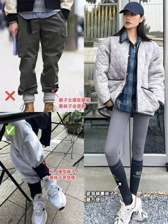 你还在那边说,袜子这样的配饰单品如果没有穿好,真的会影响整体的气质。穿的是一款收脚的休闲裤,硬是要把裤脚塞进袜子里面,就会显得臃肿。