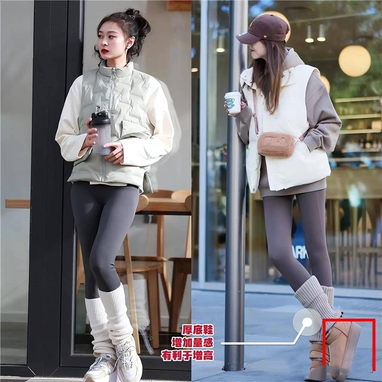 当你穿的是一双老爹鞋雪地靴的时候,那么就需要一双堆堆袜来衔接无痕裤和鞋子,不光能增加造型的层次感,而且看起来穿搭造型更自然。所以有的时候,为什么别人穿衣打扮那么的时髦洋气,自己打扮出来的就是不如意?可能就是这些细节没有做好。
