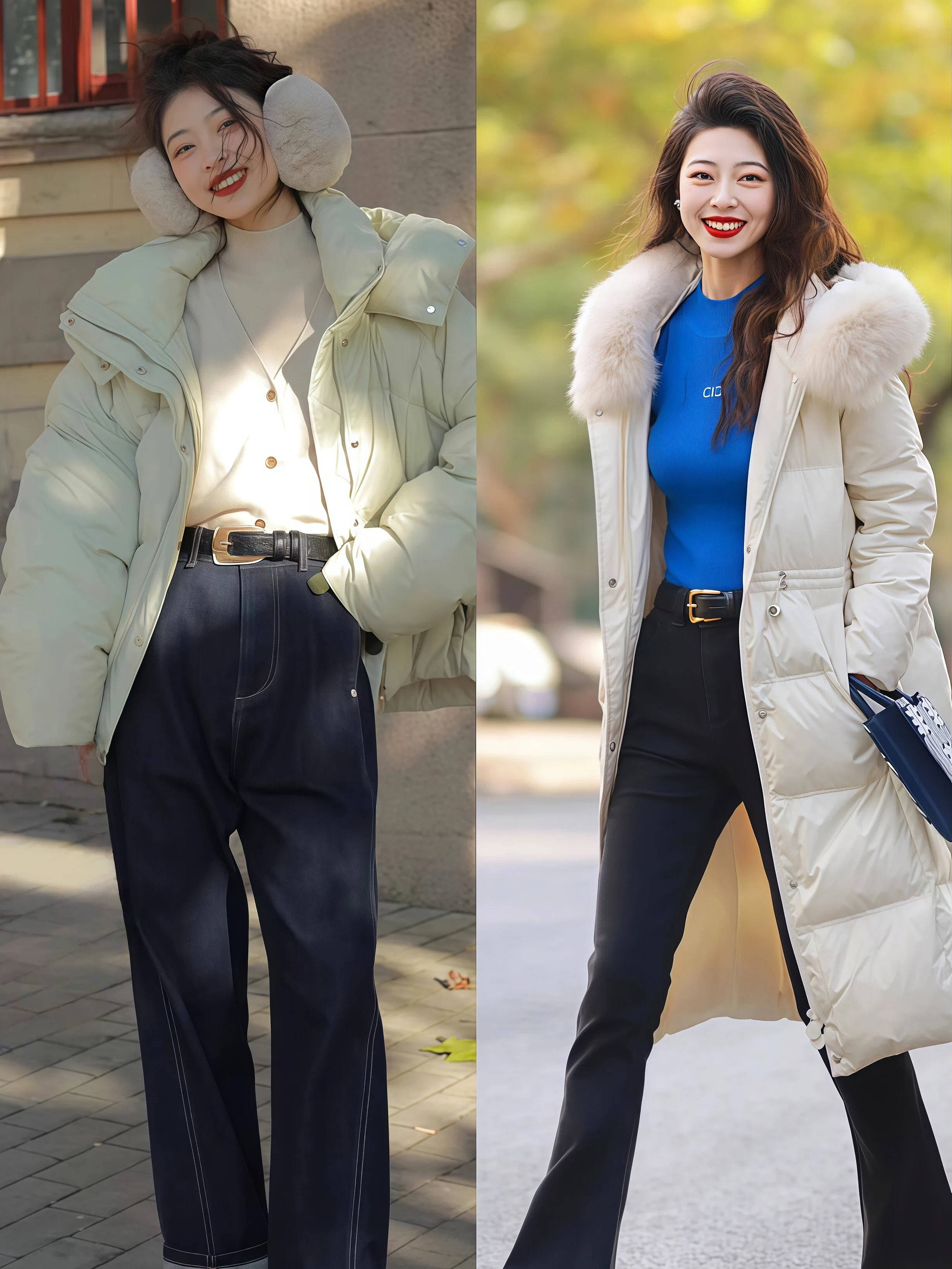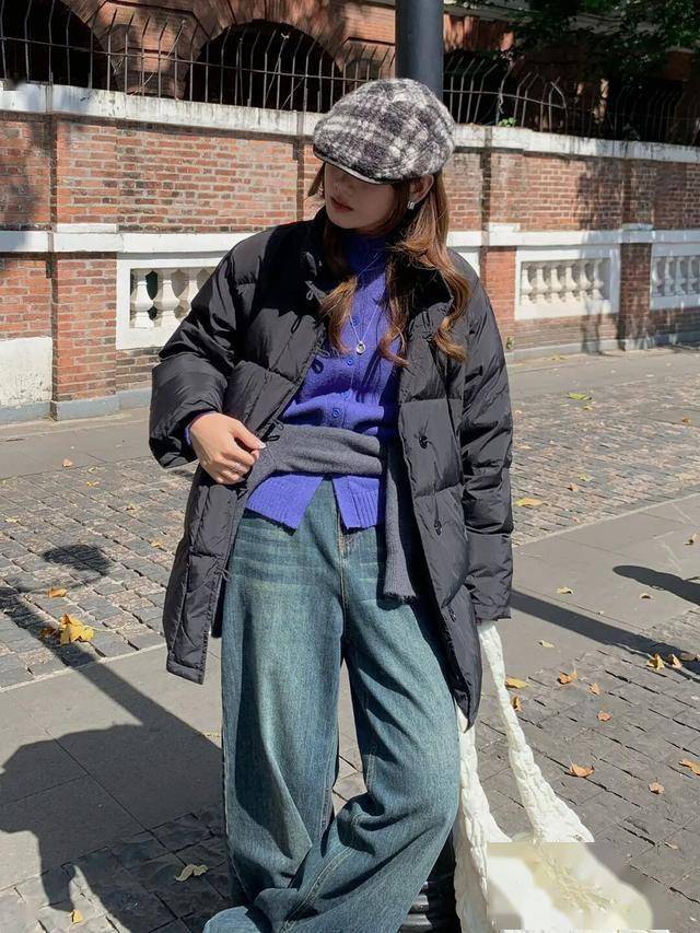上短下长:短款羽绒服搭配高腰裤/裙,视觉拉长下半身比例,小个子也能穿出大长腿 。