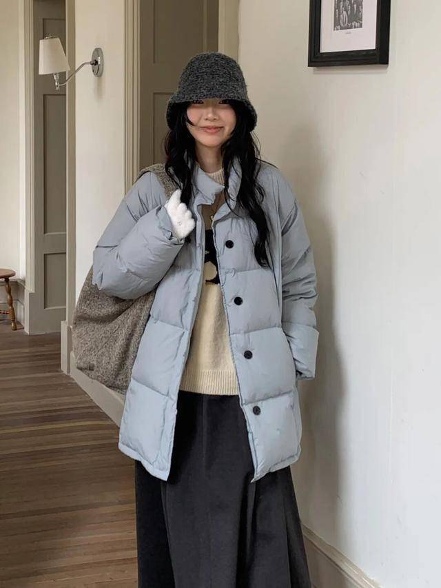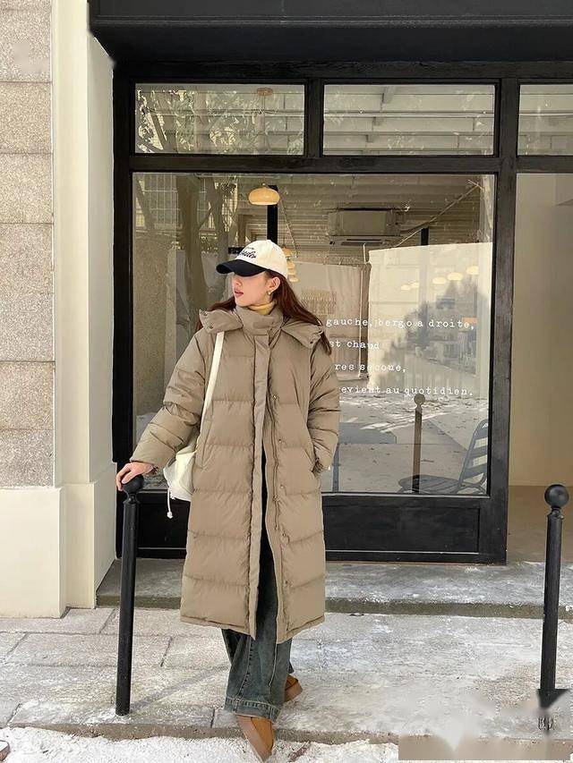 长款羽绒 + 半身裙    灰色/军绿长款    同色系A字半裙    中筒靴/乐福鞋    优雅知性,适合见长辈
