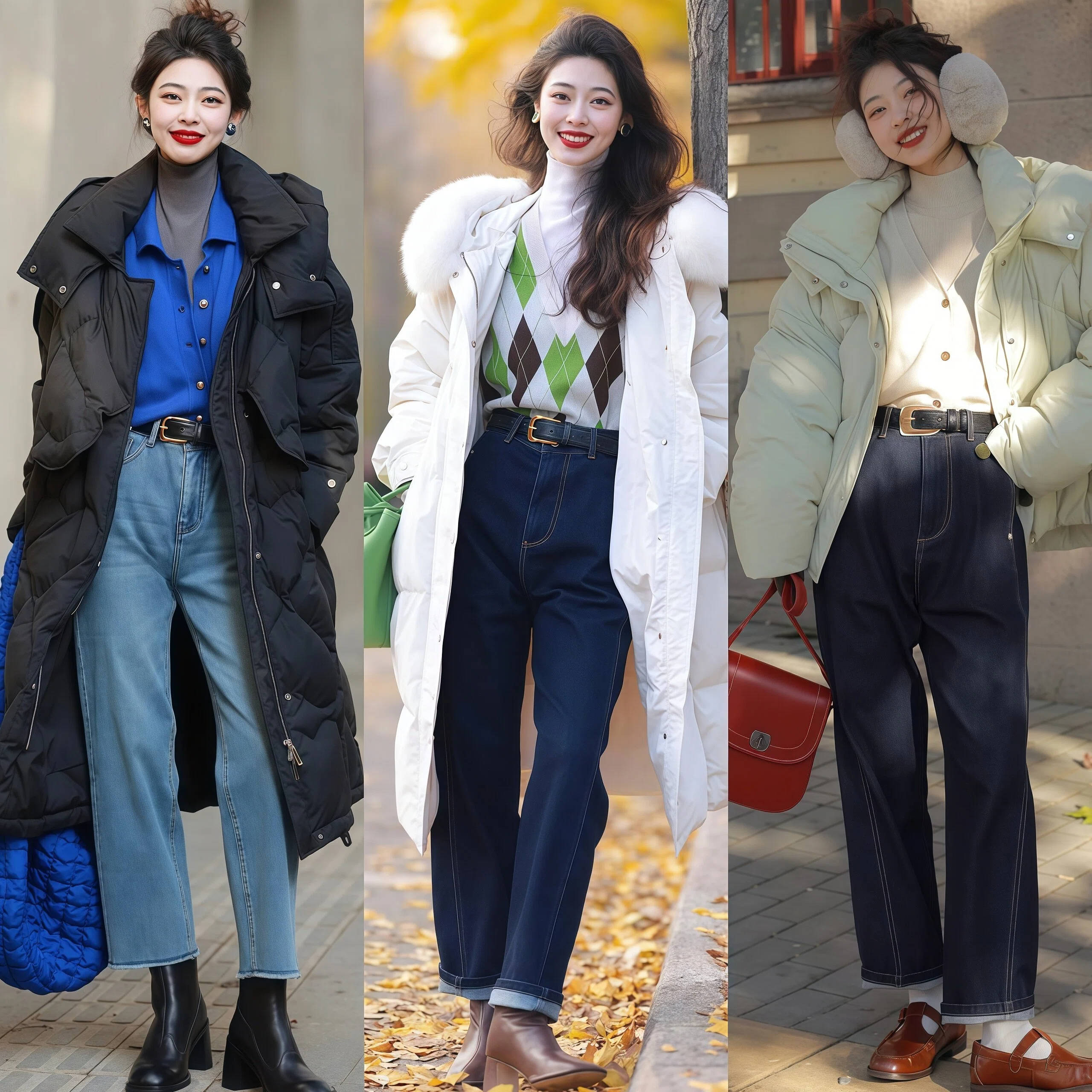 短款羽绒服+高腰下装是打造“长腿精”效果的关键,通过提升腰线和优化比例,轻松实现保暖、显瘦又提气场的过年穿搭。