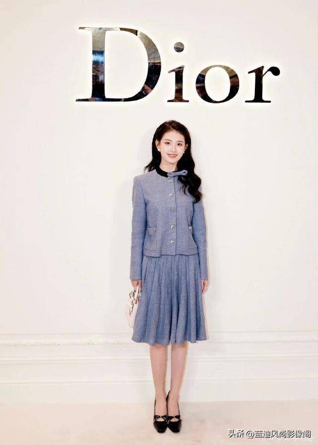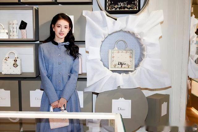 之前国剧盛典上,她穿 Dior 绿色纱裙和蓝色抹胸裙的造型就圈过一波粉。这次再穿 Dior,明显更放松了。有张照片是她站在 Dior 的展示台前,手指轻轻碰了下玻璃展柜,眼神里带着点好奇,不像其他艺人那样时刻端着 “明星架子”,反而像去看展的普通人,这种真实感倒让她和品牌的 “简约美学” 更贴了。