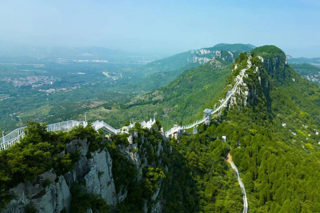 全长208米,距地面130米的挂壁玻璃栈道上,是欣赏山谷风景的绝佳视角,看崇山峻岭,看蓝天白云,尽享踏云临山的惬意。