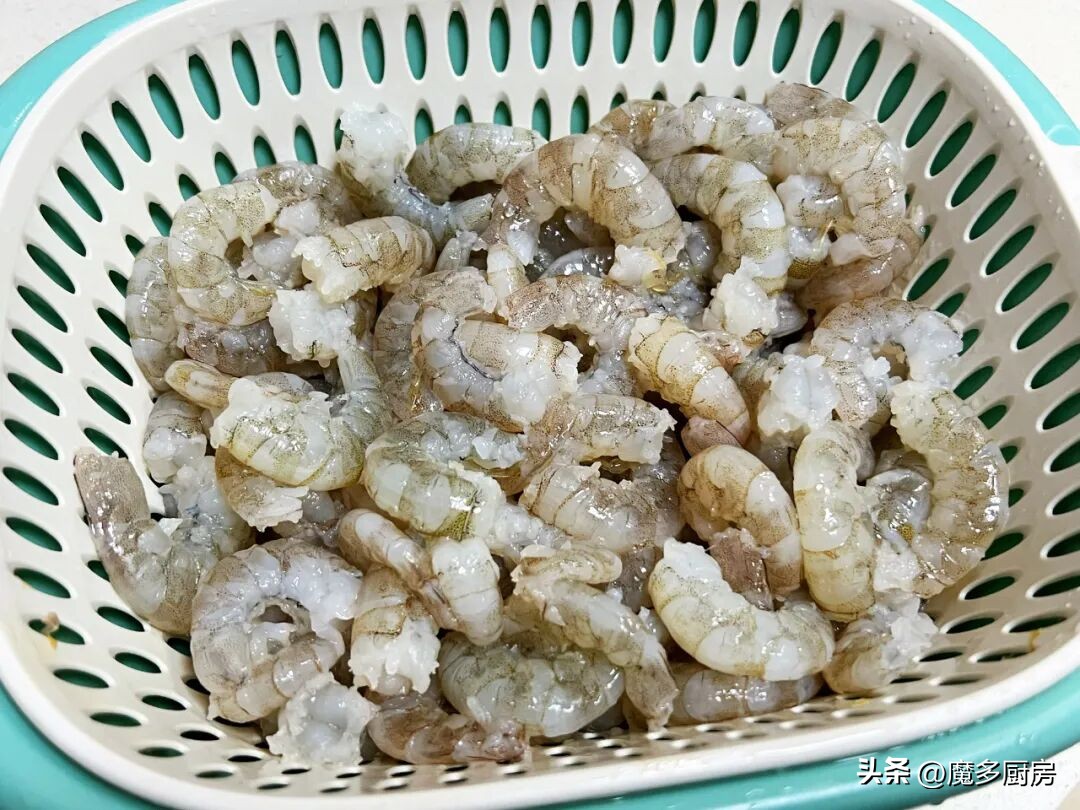 步骤1:先把活虾剥出虾仁,冲洗干净。活虾剥虾仁很方便,揪着虾头就能把虾线完整地带出来。