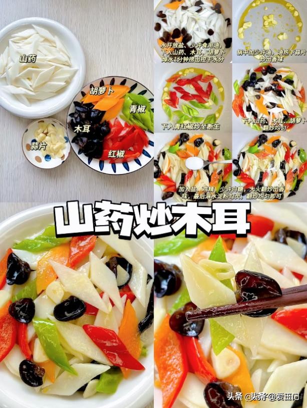 山药 山药性平味甘,能健脾补肺、且易于消化,非常适合在秋季食用。 推荐菜谱:山药炒木耳