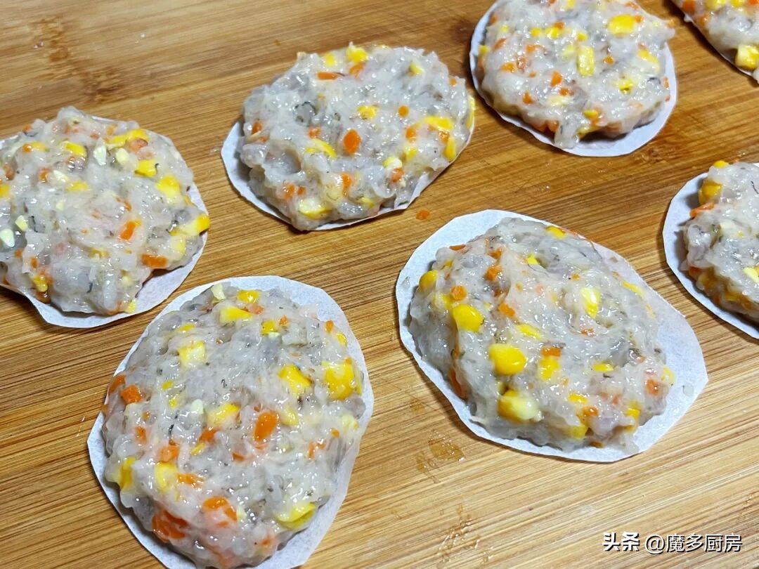 【什锦虾饼】 【食材配料表】:虾仁、甜玉米粒、胡萝卜、鸡蛋清、葱、姜、花雕料酒、玉米淀粉、盐、白胡椒粉、食用油。 【具体做法如下】: